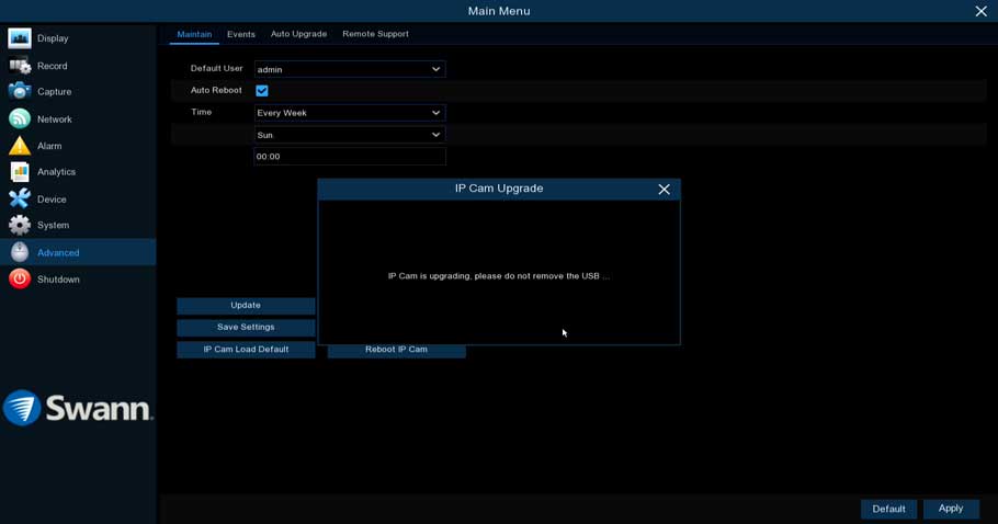 Menu Advance Maintain IPCamUpgrade selectchannel updating