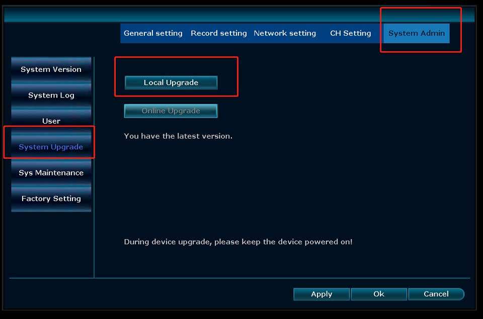 Views: 14xmartO NVR Ip Camera Firmware Guide, How to upgrade xmartO NVR Firmware? Here are two ways to upgrade your NVR. Online upgrade: 1. Keep your NVR connected to Internet and make sure status is ONLINE. 2. In NVR’s main menu – System Setting – System Admin – System Upgrade, …